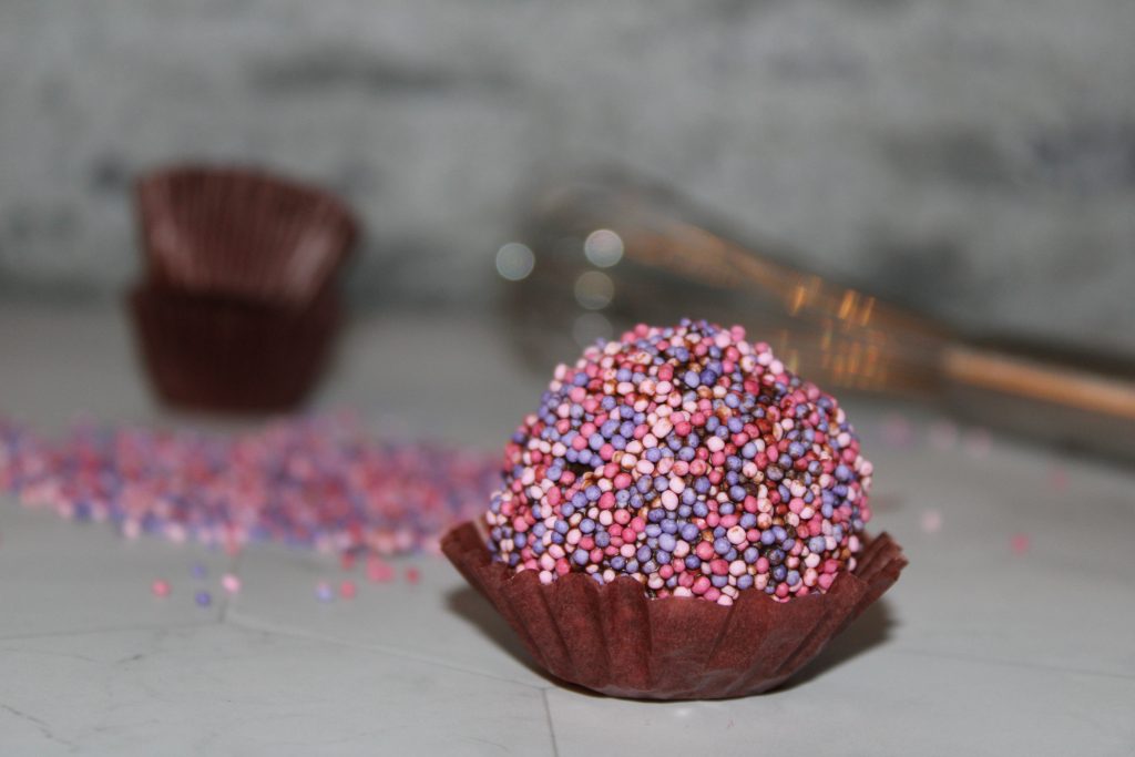 • Immédiatement après, roulez les boules dans la vermicelle arc-en-ciel pour une touche colorée.
